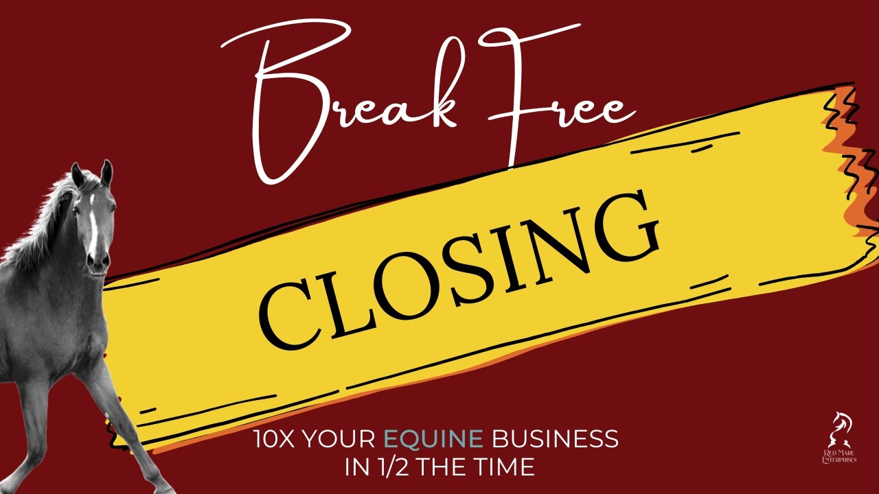 | In just 1 hour I'm closing registration for Break Free - 10x your equine business with ½ the time (tonight at 10 pm U.S. Eastern time). IMPORTANT: Registration closes TONIGHT – Sunday, June 19th at 10pm ET This is the last email I’m sending you about it. So it’s now or never. If you don’t sign up now, you’ll have to wait until next time. Still on the fence? Don’t forget – you’ll have 30 days to “test drive” Break Free before you need to decide whether you’d like to keep it. If you don’t think it’s right for you, then you get a full refund – no questions asked. If you’ve been longing to take control of your income, your time, and your life and serve more horses better, Break Free is a no-brainer. The good news is – you’ve still got time to join us… but you need to act fast. REGISTER for Break Free Now (closing in an hour) To your success, Catherine and team P.S. If you’ve been hesitating about joining us inside Break Free, ask yourself... would you regret taking action on something that can dramatically move you forward in business and in life… based on proven principles that have worked for thousands of other business owners in industries similar to yours? Join Break Free and start getting excited for all the awesomeness that’s about to enter your life! REGISTER for Break Free Now (closing in an hour) |